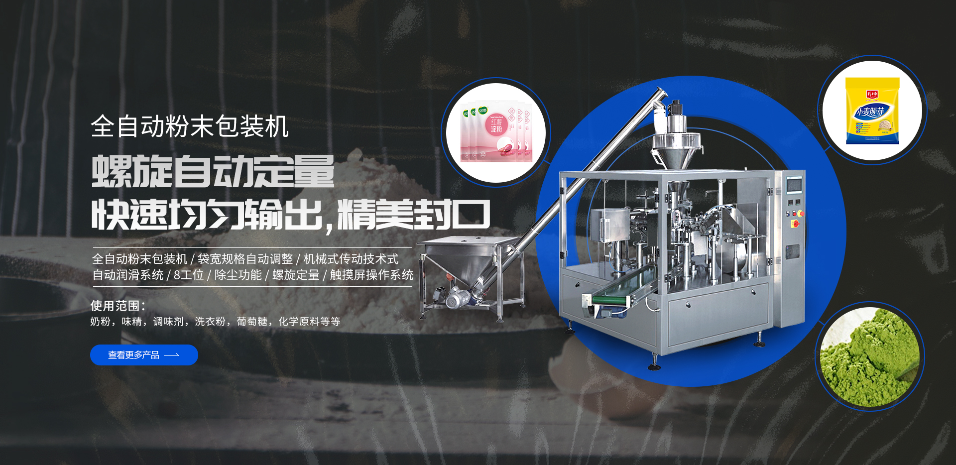 以上多種不同功能的包裝生產(chǎn)線設(shè)備(粉末包裝機(jī)、給袋式包裝機(jī)、全自動包裝機(jī)、顆粒|液體|食品|醬腌菜包裝機(jī)),請根據(jù)需求選擇,如有疑問請聯(lián)系我們的顧問